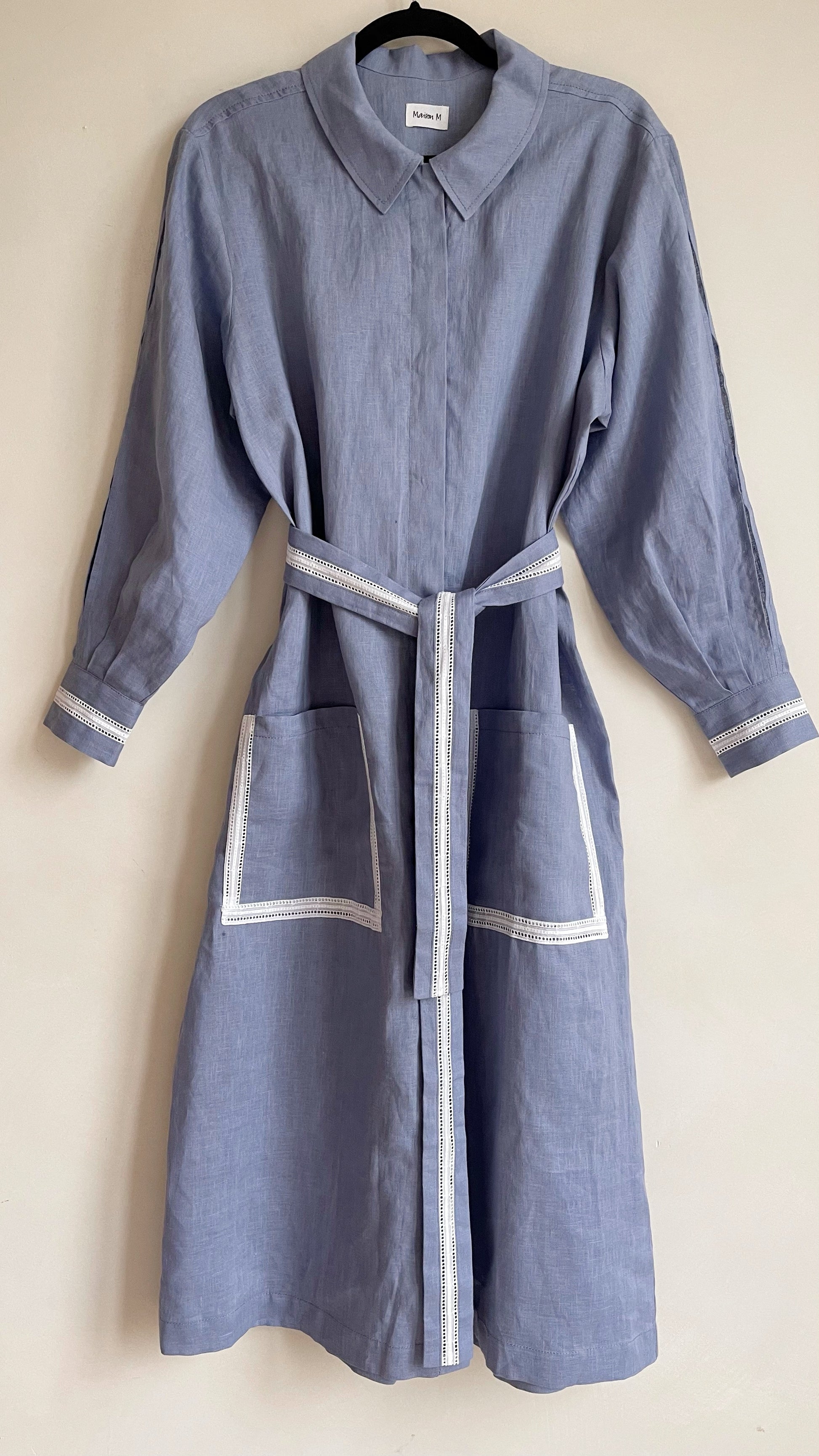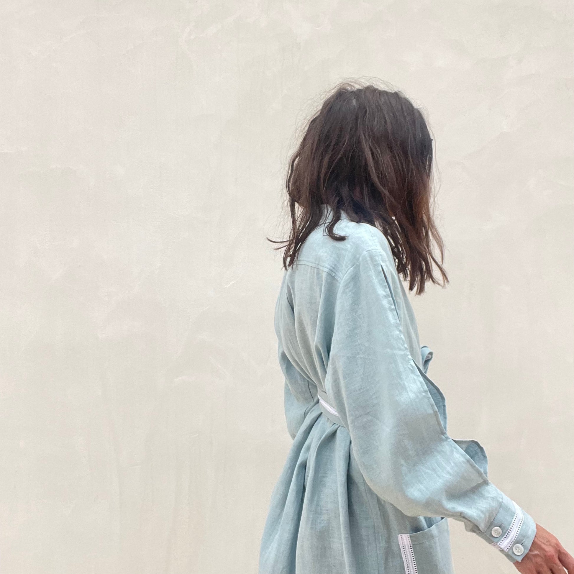 Our Linen shirt dress is a true wardrobe staple with beautiful sleeve and trim detailing. Designed to be truly versatile, it can be worn belted or loose, open or closed enabling you to wear it from the city to the beach and back again.