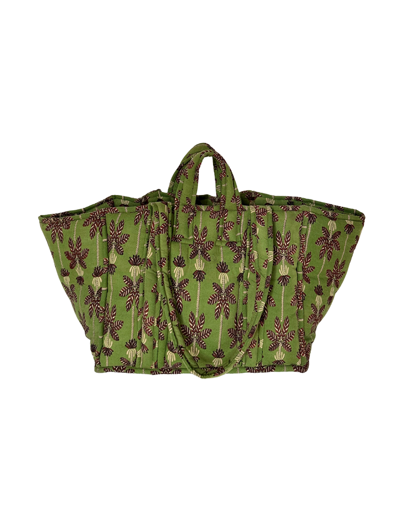 Palm print cotton tote bag. Fully padded (straps and handles included) for strength and comfort. Inner pocket for smaller items and valuables.