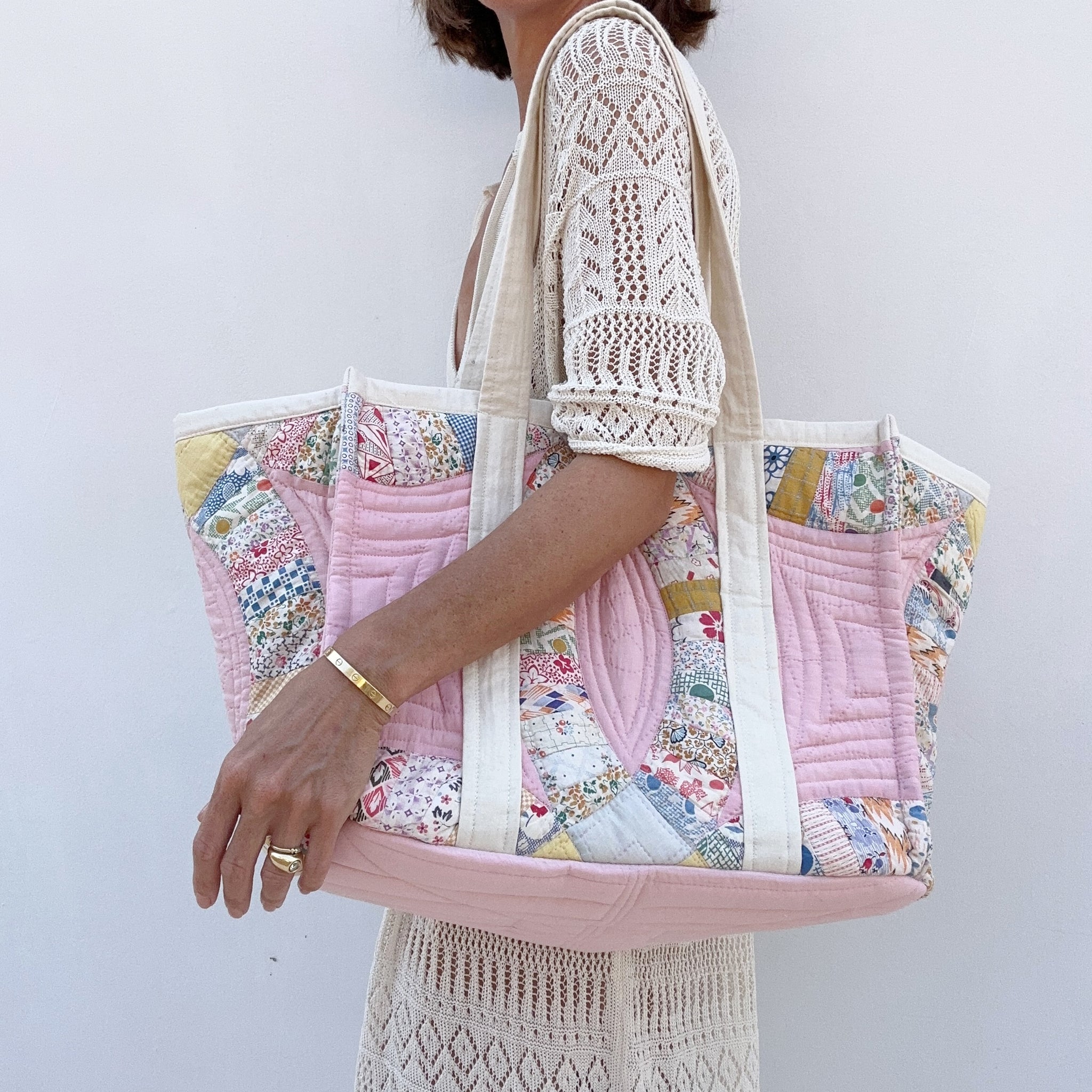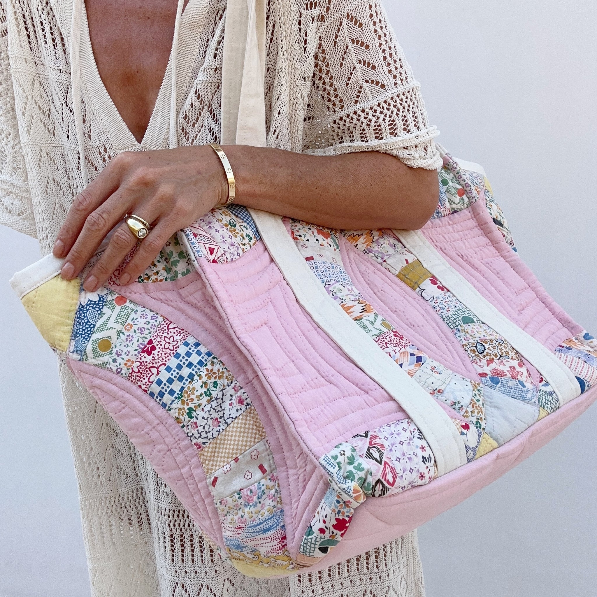 Stunning reworked patchwork bag. Oversized with 2 large inner pockets and reinforced bottom.